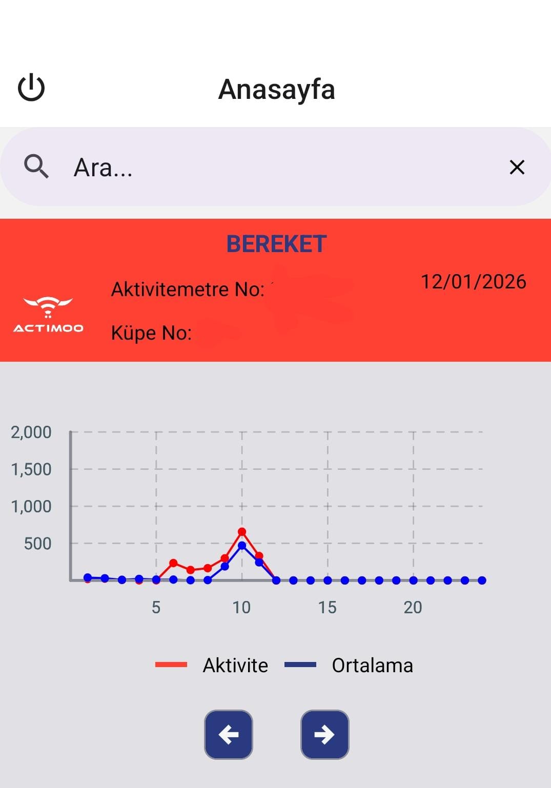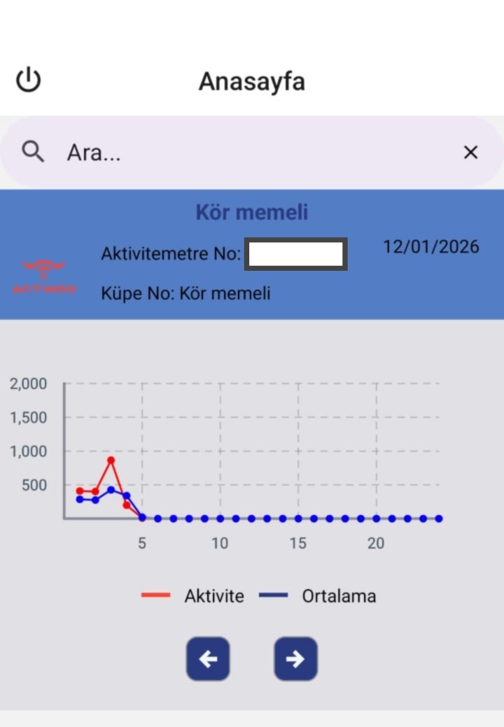 - Grafiğin üst kısmı kırmızı renkte ise, hayvanda normalin üzerinde bir hareketlilik tespit edildiğini ve bu duruma ilişkin SMS bildiriminin tarafınıza iletildiğini ifade eder.
