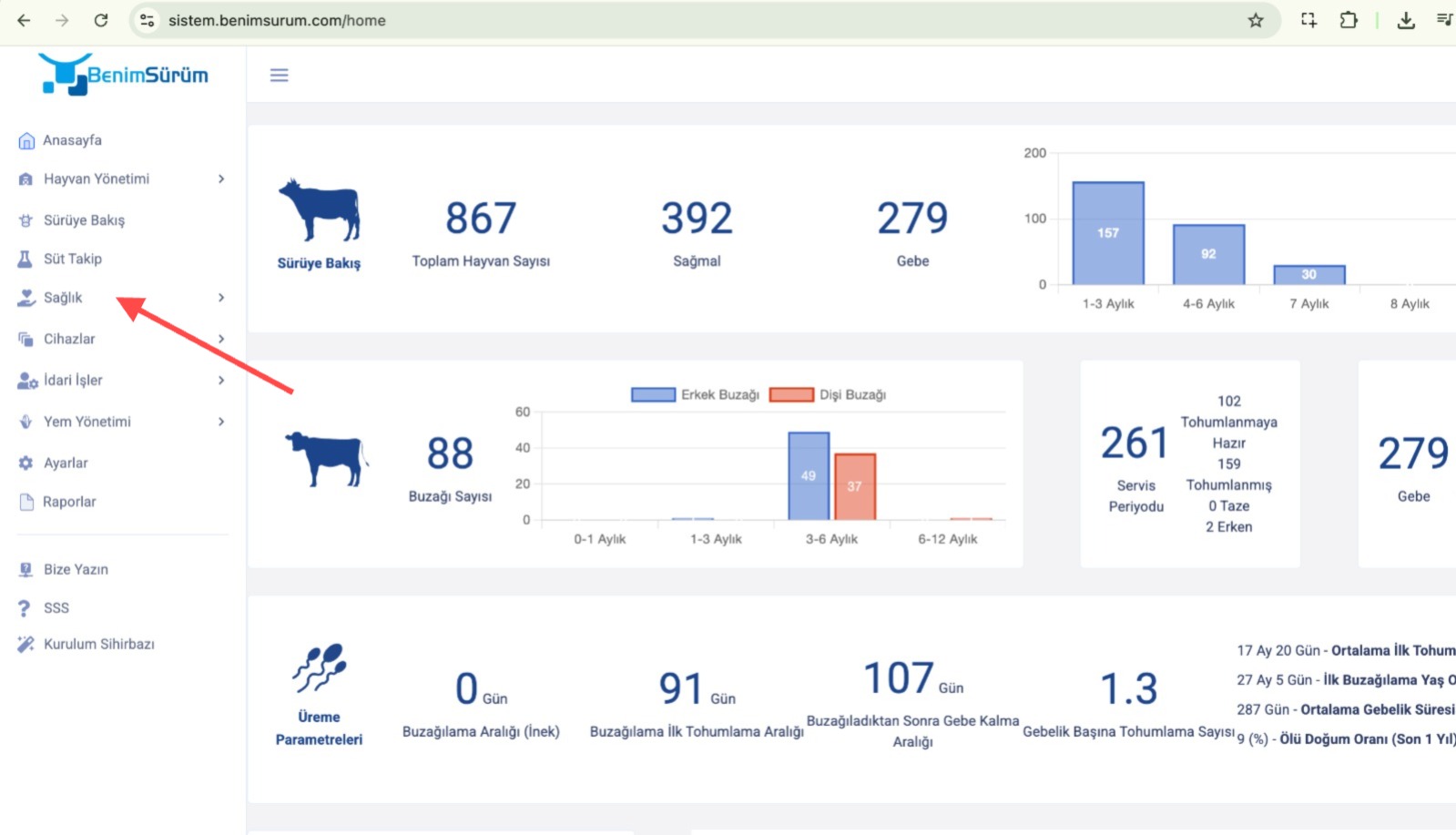 - Sol menüde yer alan "Sağlık" sekmesine tıklayınız.