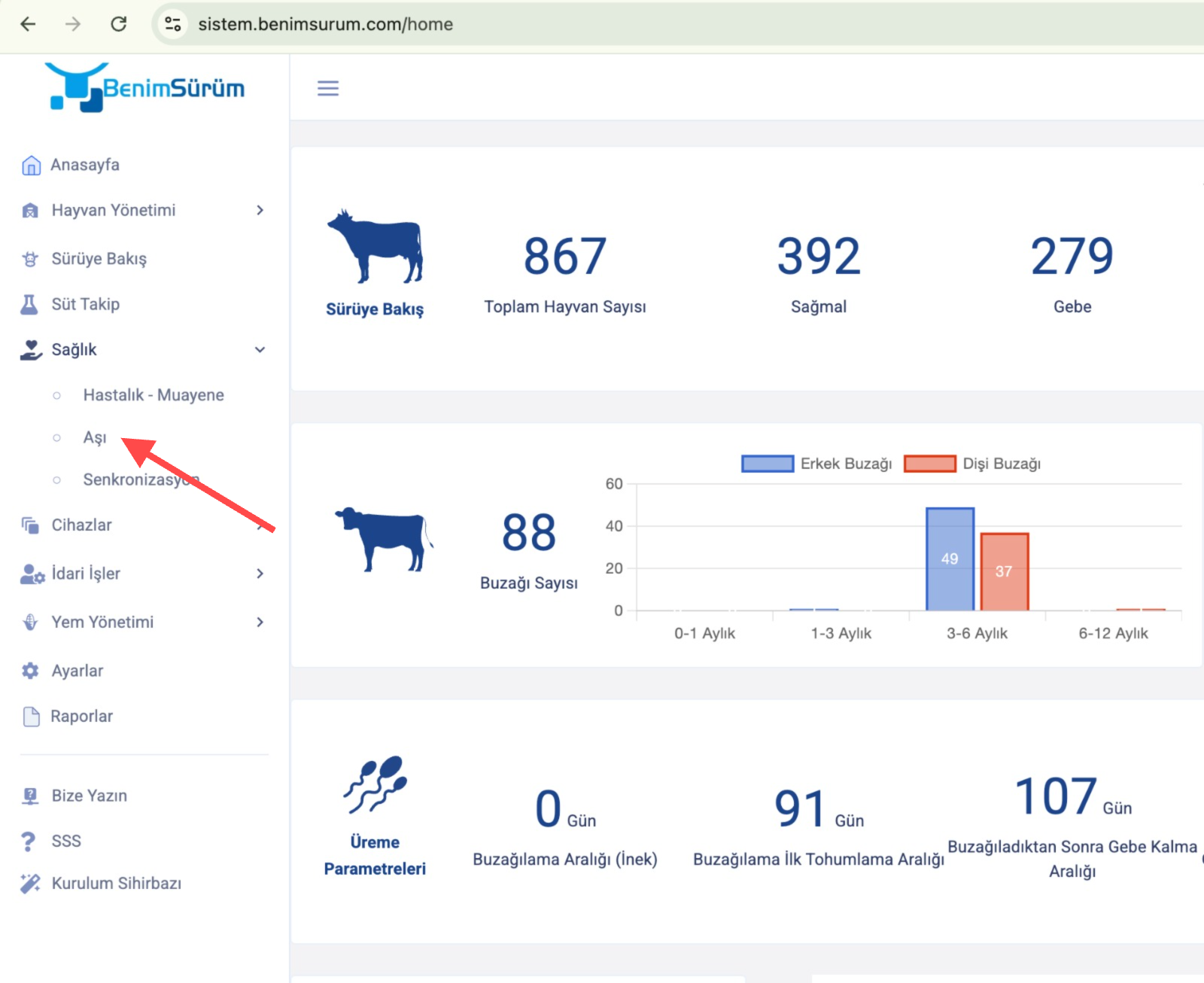 - Açılan alt sekmelerden "Aşı" sekmesini seçiniz.