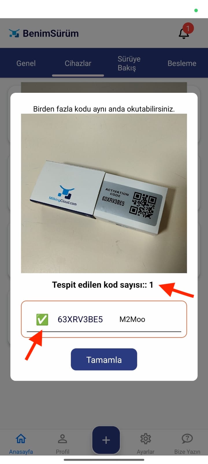 - Her bir cihaz için ayrı ayrı aktivasyon kodunun okutulması zorunludur.