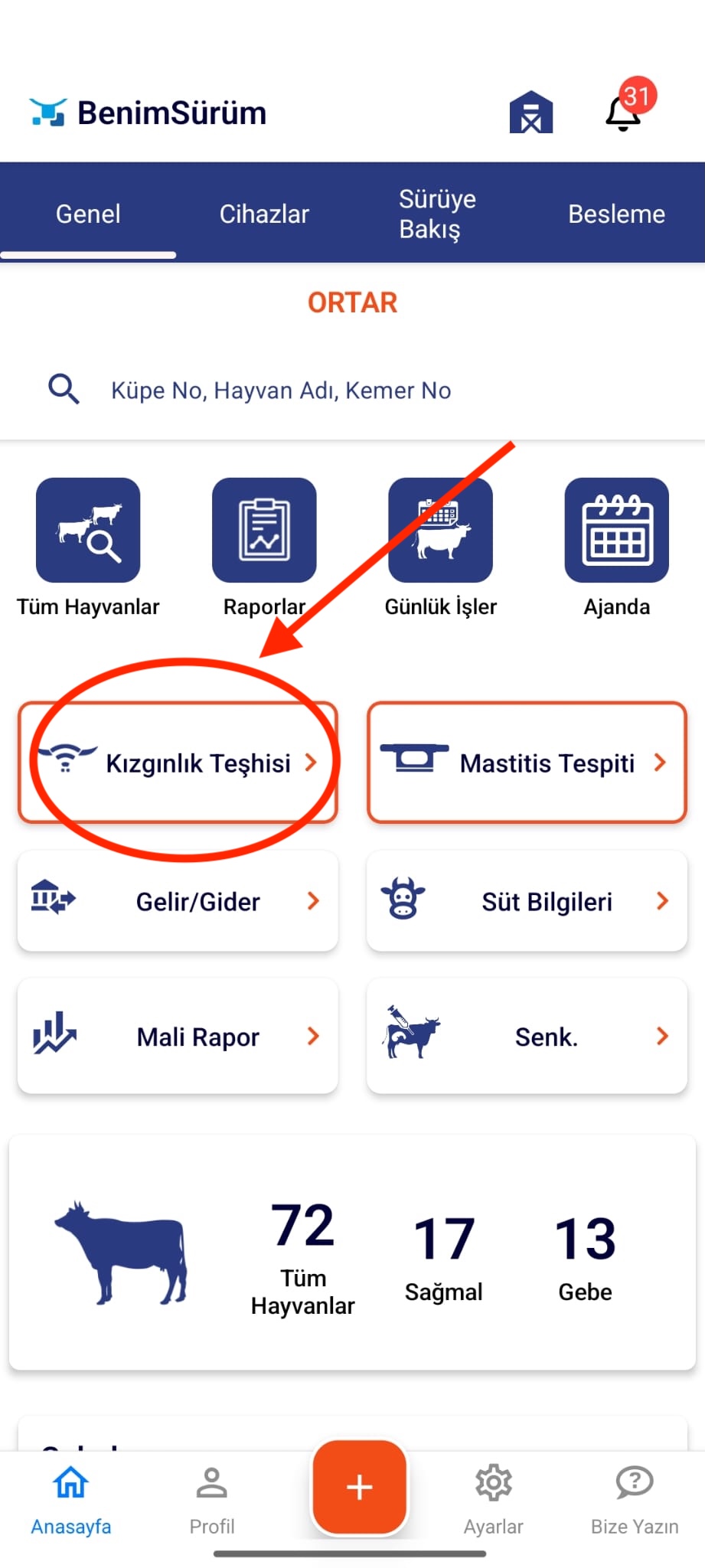 Bu işlem üç farklı yöntemle gerçekleştirilebilir: 1. Mobil Uygulama Üzerinden Benim Sürüm mobil uygulamasında ana ekrandan Kızgınlık Teşhisi sekmesini seçiniz. Açılan ekranda, başka bir hayvana takma…
