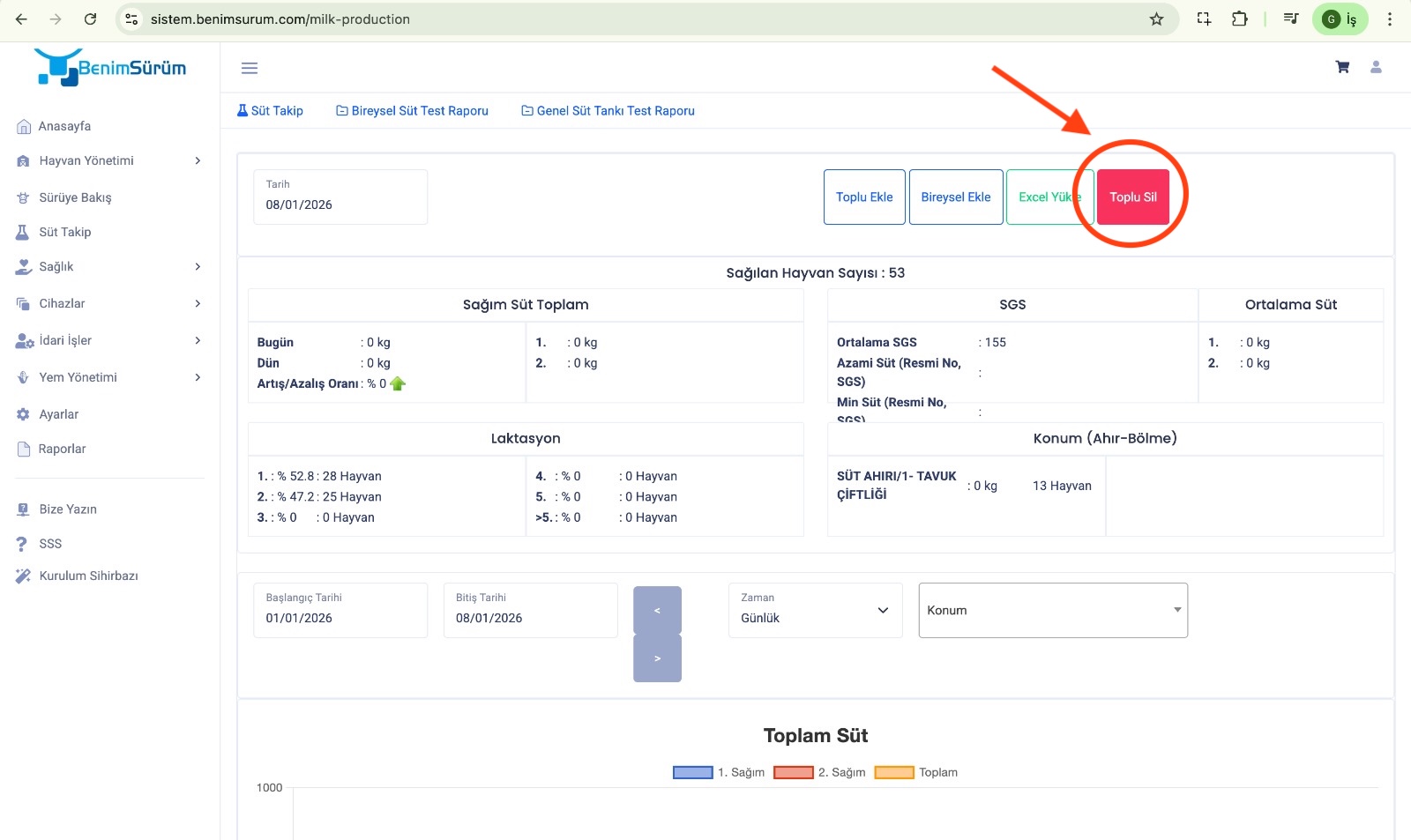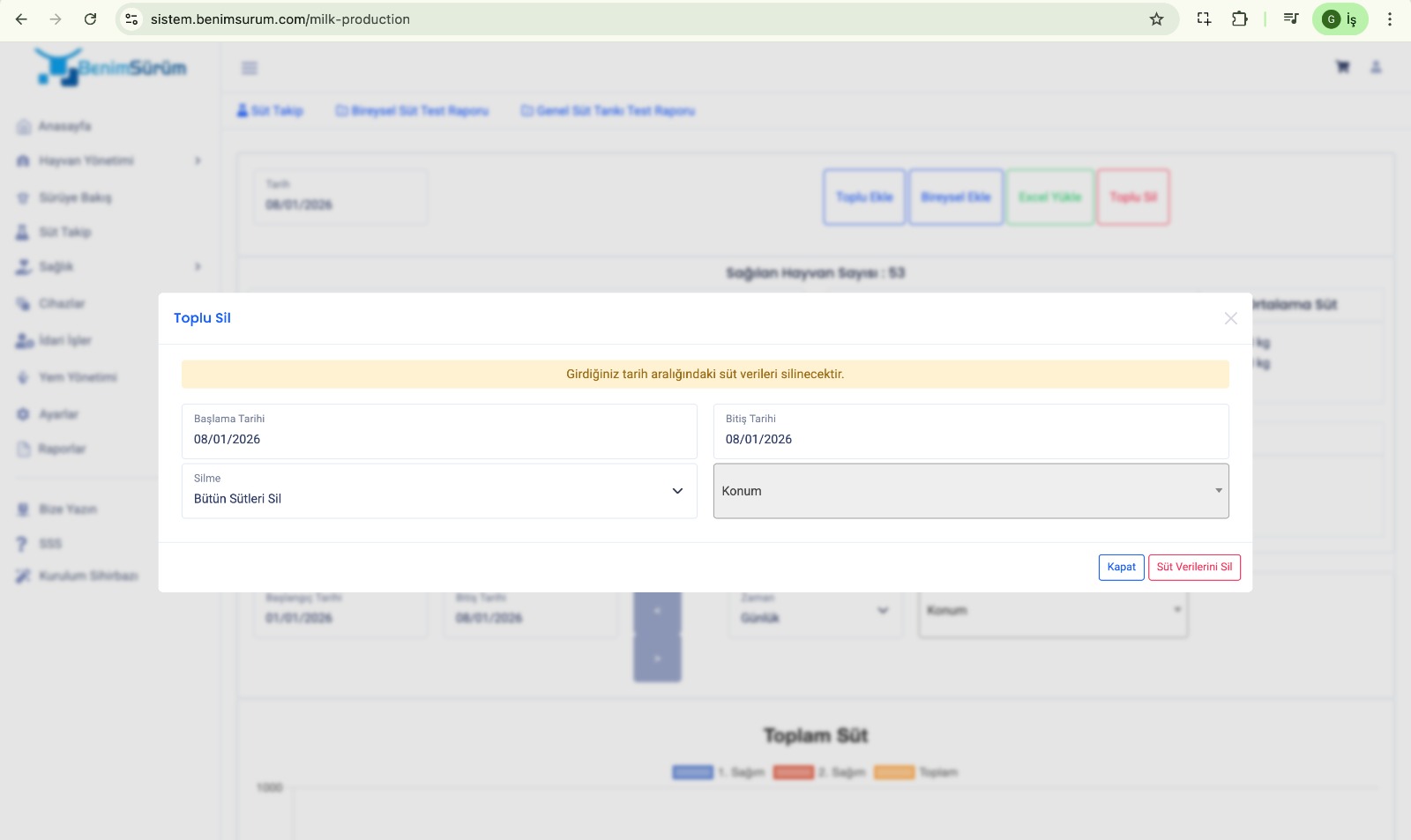 Süt Takip – Konum Bazlı Toplu Silme İşlemi