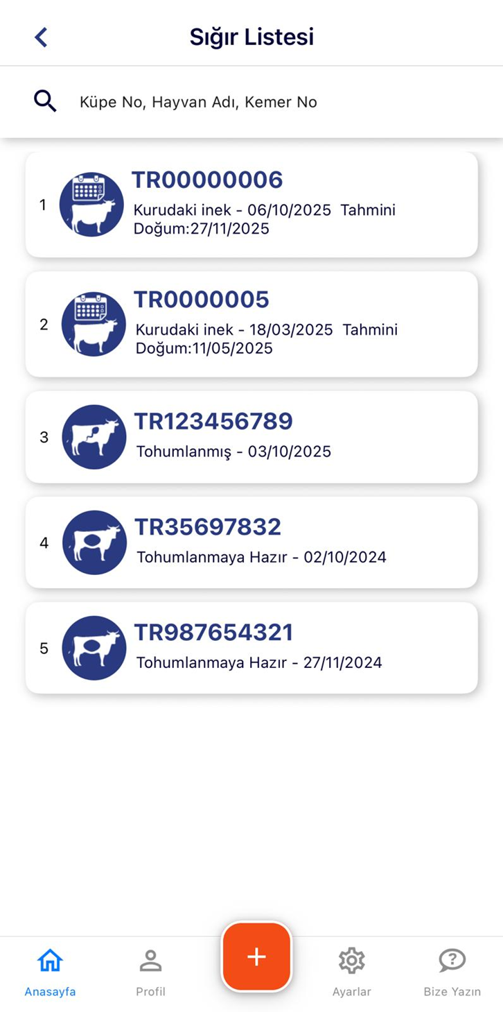 - Ana sayfada bulunan 'Tüm Hayvanlar' sekmesine tıklayınız. Tohumlama eklemek istediğiniz hayvanı seçiniz.