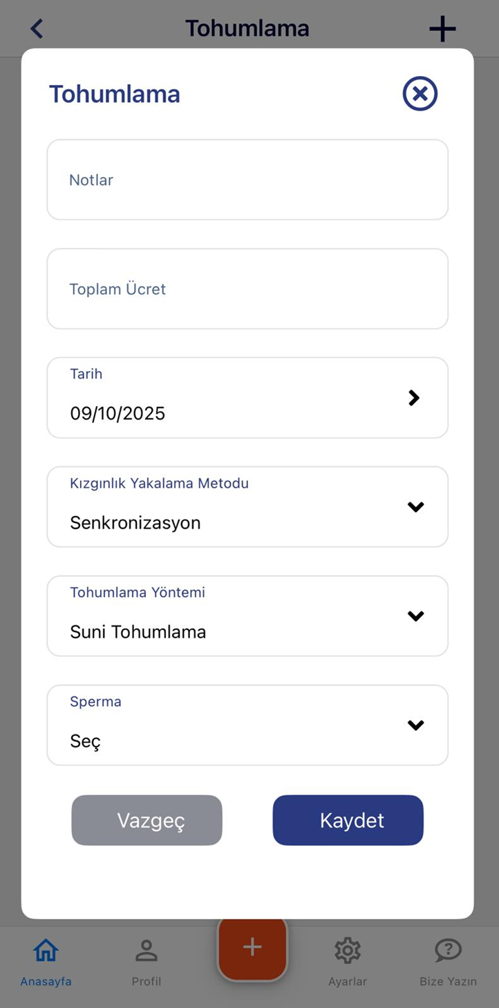 Tohumlama tarihini doğru girdiğinizden emin olunuz. Girilen tohumlama tarihine göre sistem öngörülen gebelik muayene zamanında sizi bilgilendirecektir.