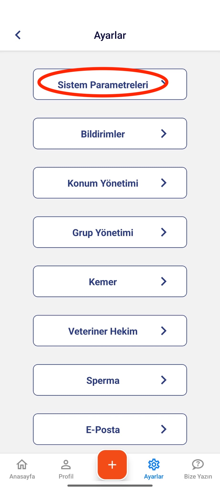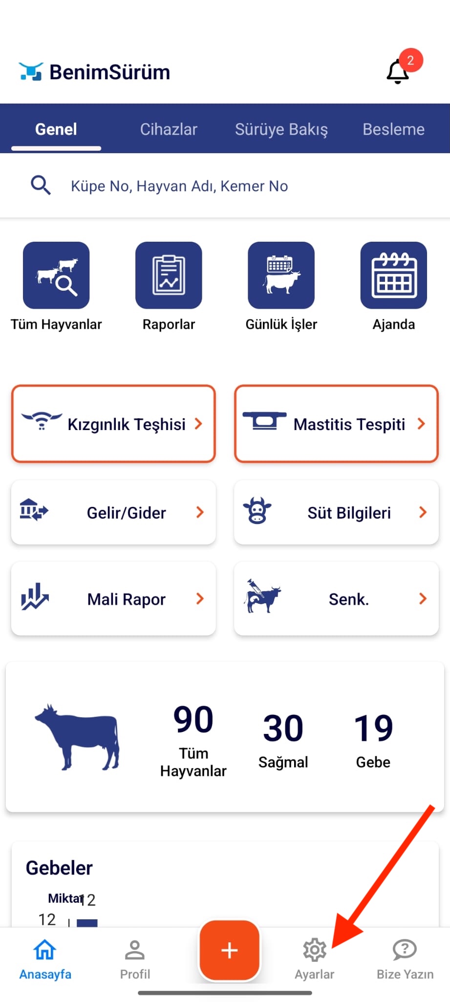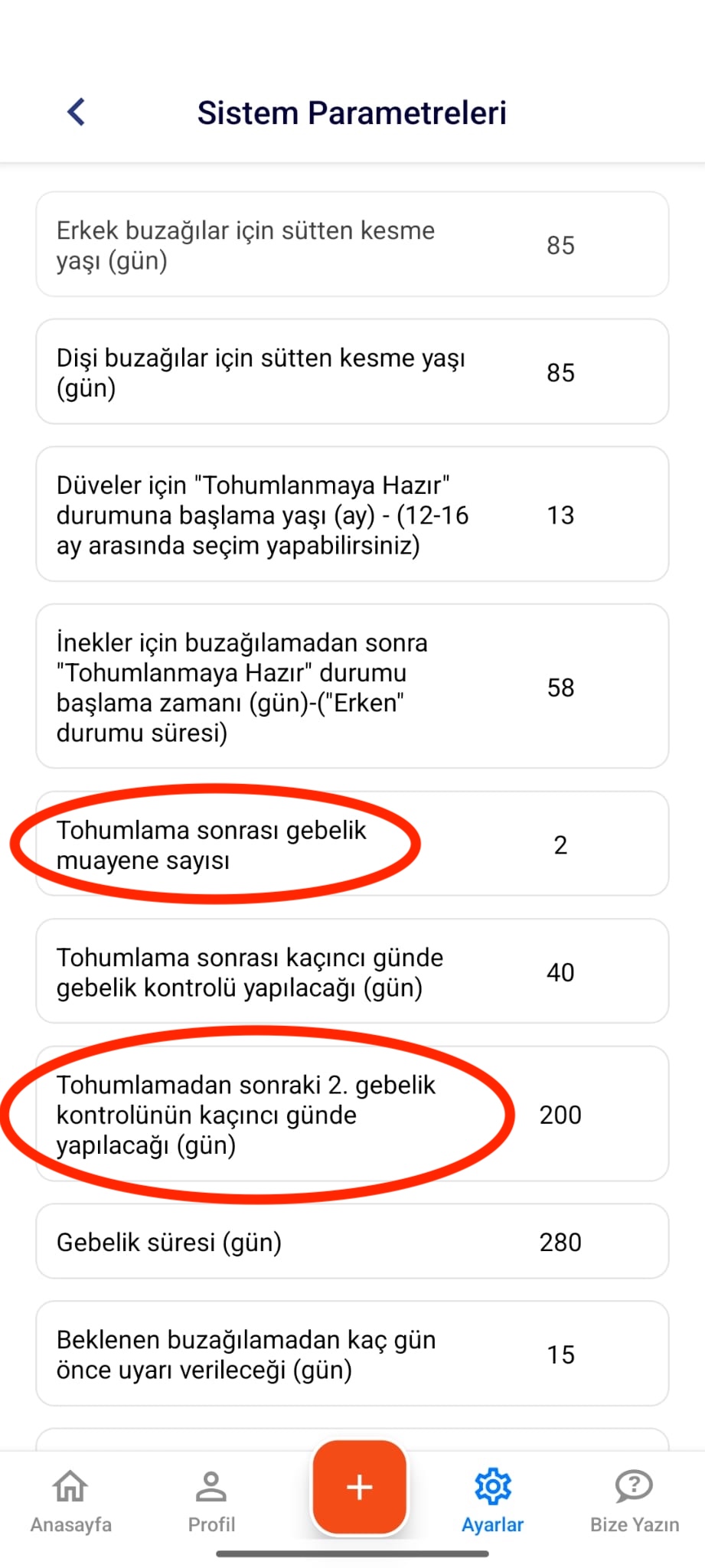 Sistemde ikinci gebelik bildirimi oluşturabilmek için aşağıdaki adımları izleyiniz: Mobil uygulamanızda Ayarlar sekmesine gidiniz. Açılan ekranda Çiftlik Ayarları bölümünü seçiniz. Ardından Sistem Pa…