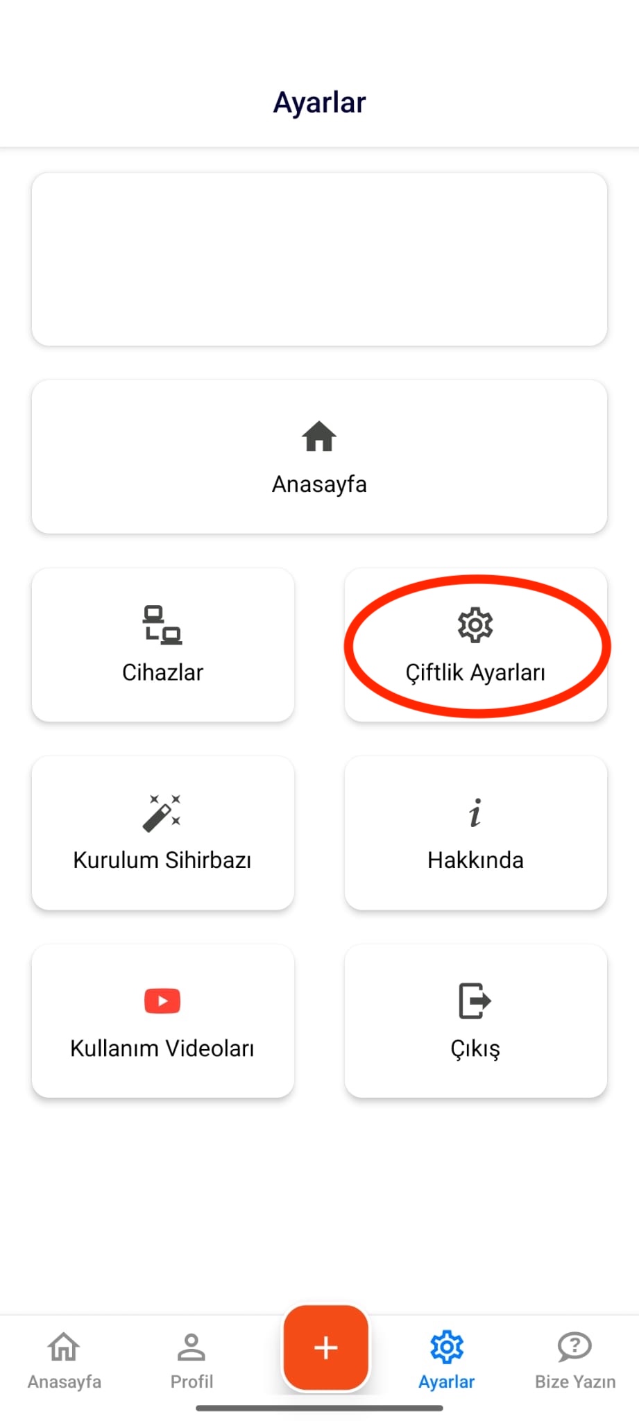 - Açılan ekranda Çiftlik Ayarları bölümünü seçiniz.