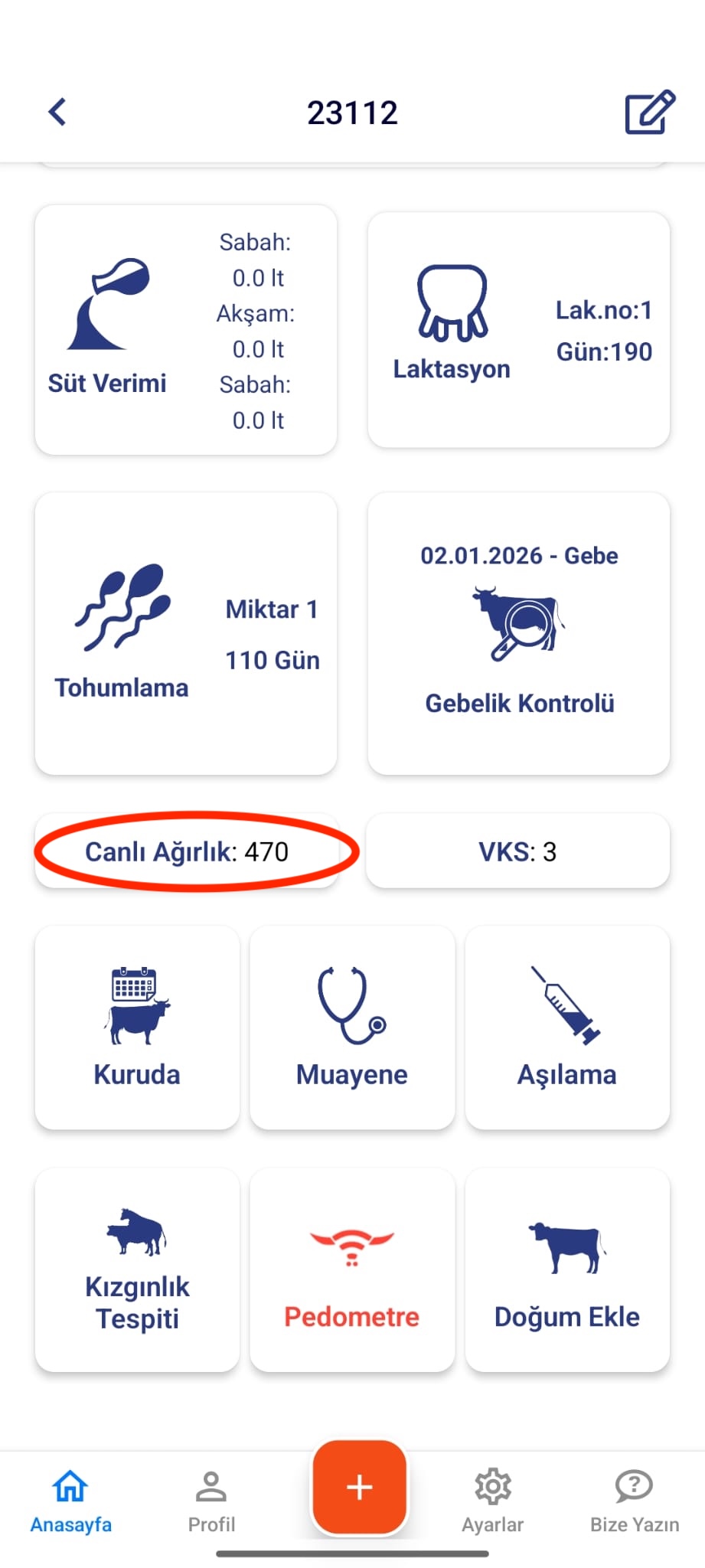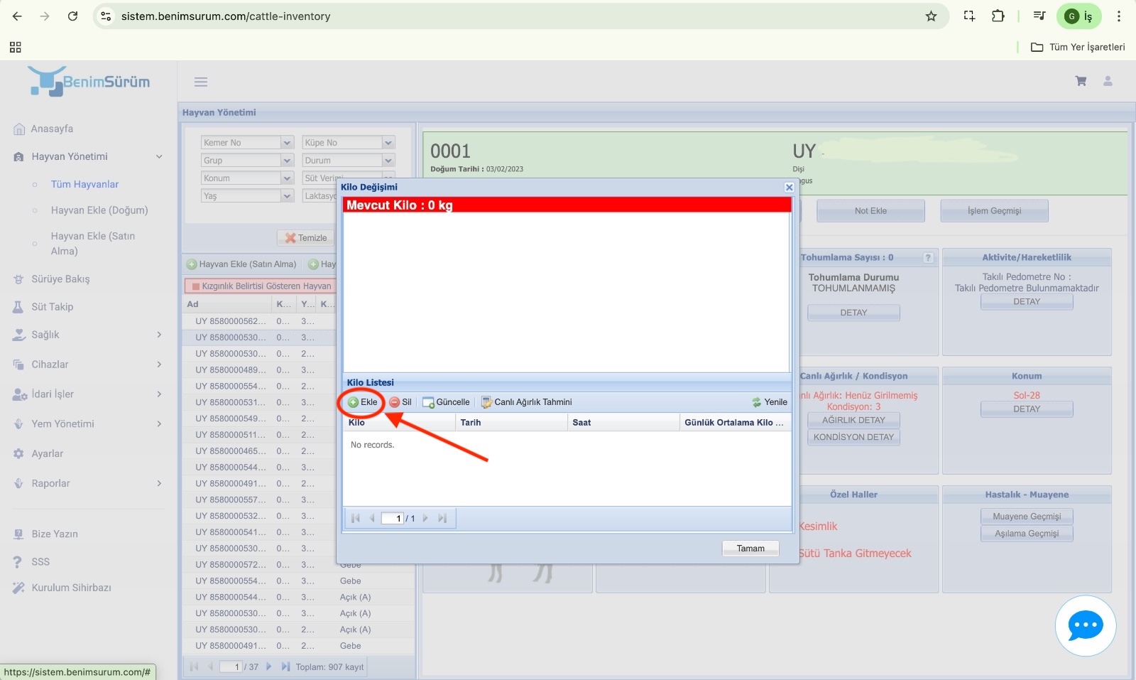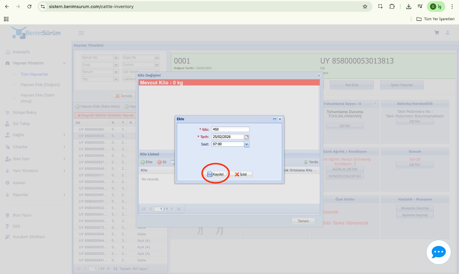 - Hayvanınıza ait canlı ağırlık bilgisini girip kaydedin.