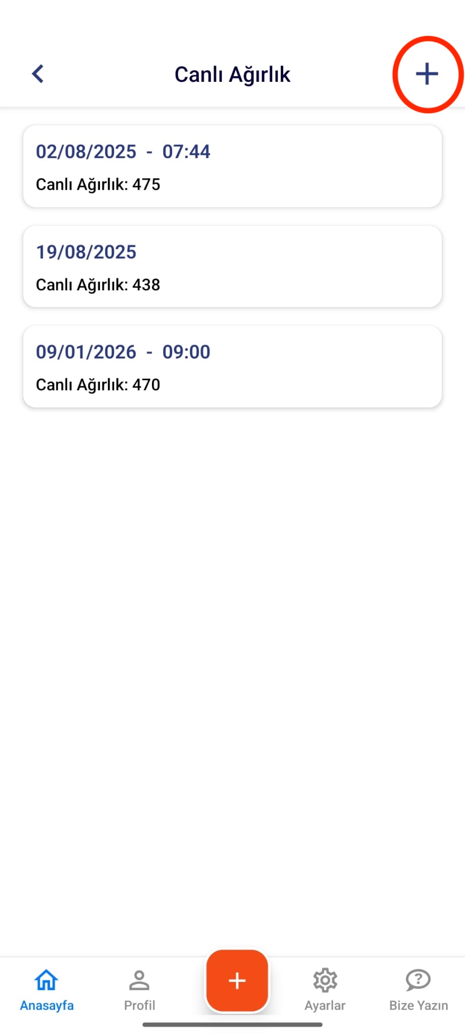 Canlı ağırlık bilgisini hem web hem de mobil uygulama üzerinden aşağıdaki adımları izleyerek girebilirsiniz.