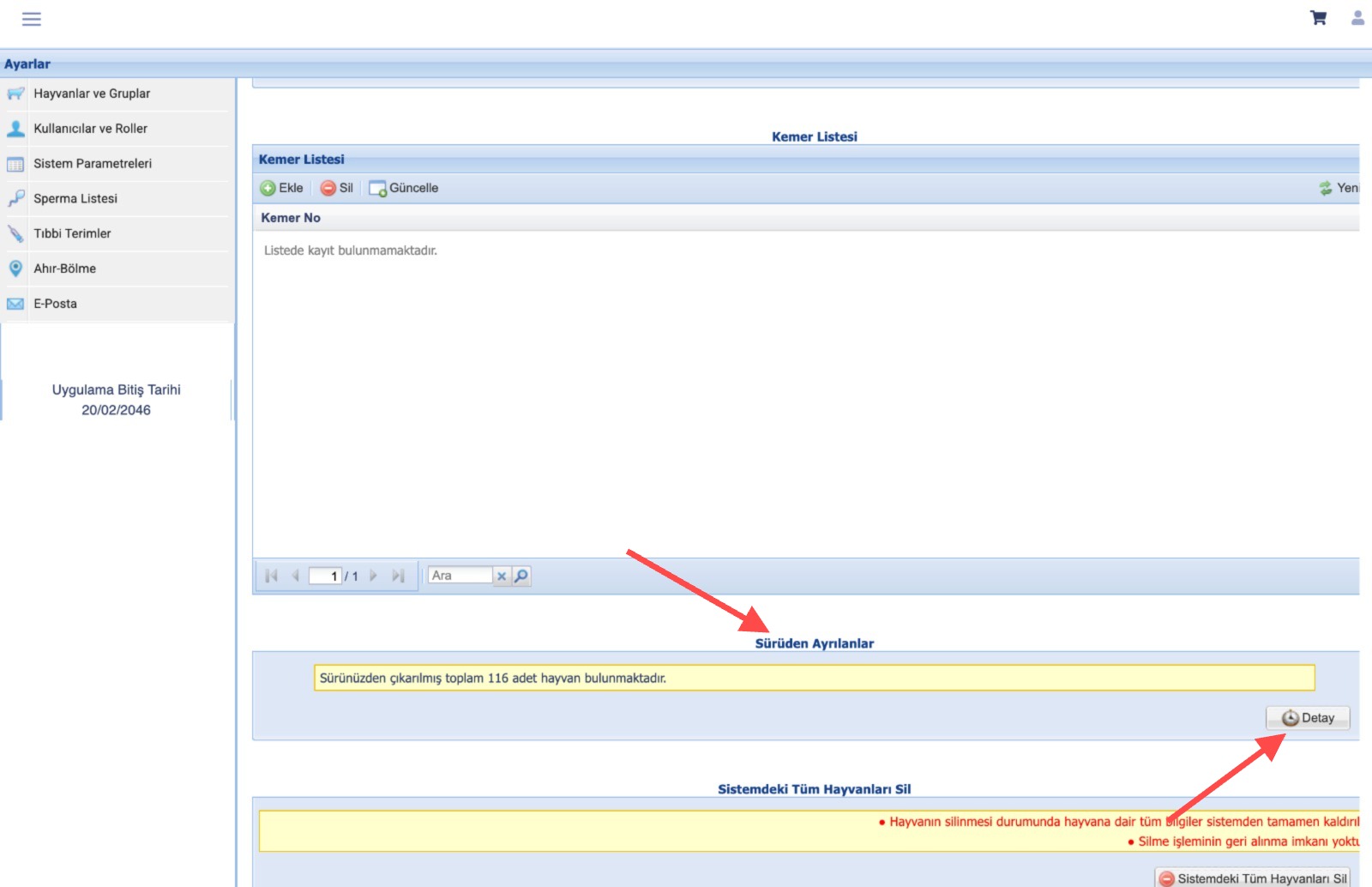 - Açılan ekranın alt kısmında yer alan "Sürüden Ayrılanlar" bölümünde "Detay" seçeneğine tıklayın.