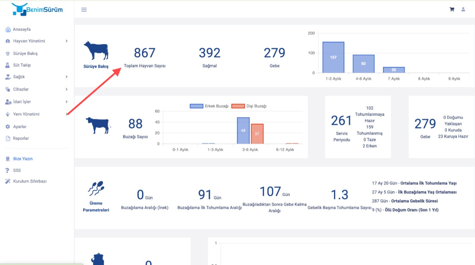 - Ana ekranınızda yer alan "Toplam Hayvan Sayısı" kısmından hayvanı kontrol edebilirsiniz.