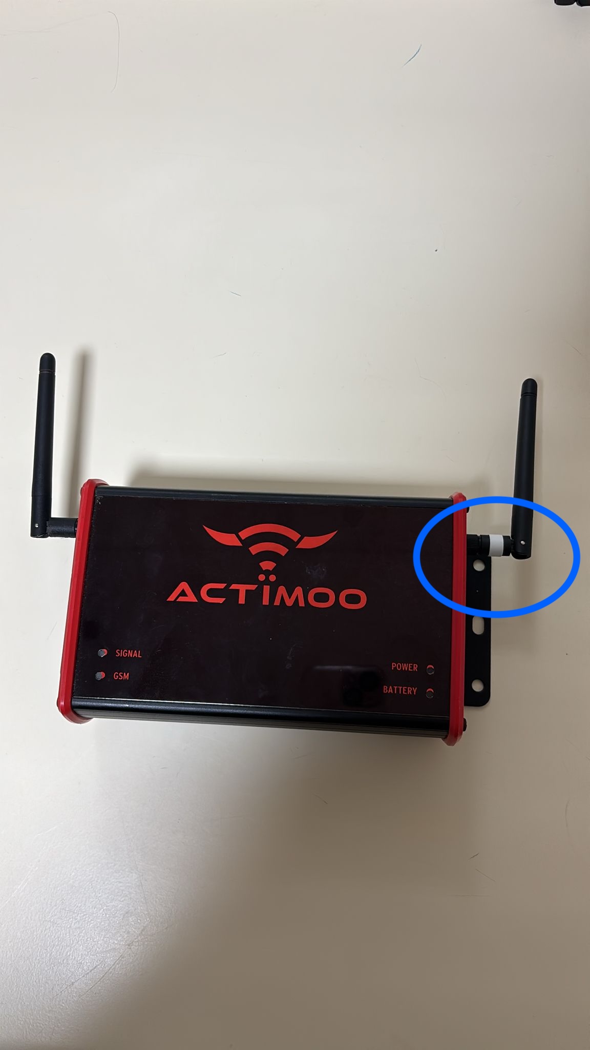 Actimoo readerınızı " Off" konumuna getiriniz. Reader üzerindeki beyaz etiketli anteni bulunuz. Anteni saat yönünün tersine çevirerek çıkarınız. Çıkarılan antenin altında altın renkli somun vida bulu…