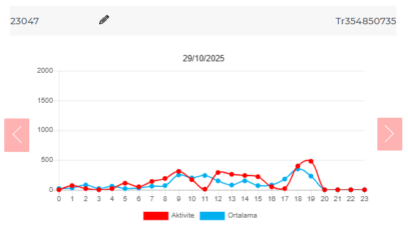 Aktivitemetreyi hayvana taktıktan sonra 5-6 saat içerisinde veriler gelmeye başlar. İlk gün sadece kırmızı çizgi (aktivite) gözükecektir. 2.gün mavi (ortalama) çizgi grafikte görünecektir. Grafikte d…