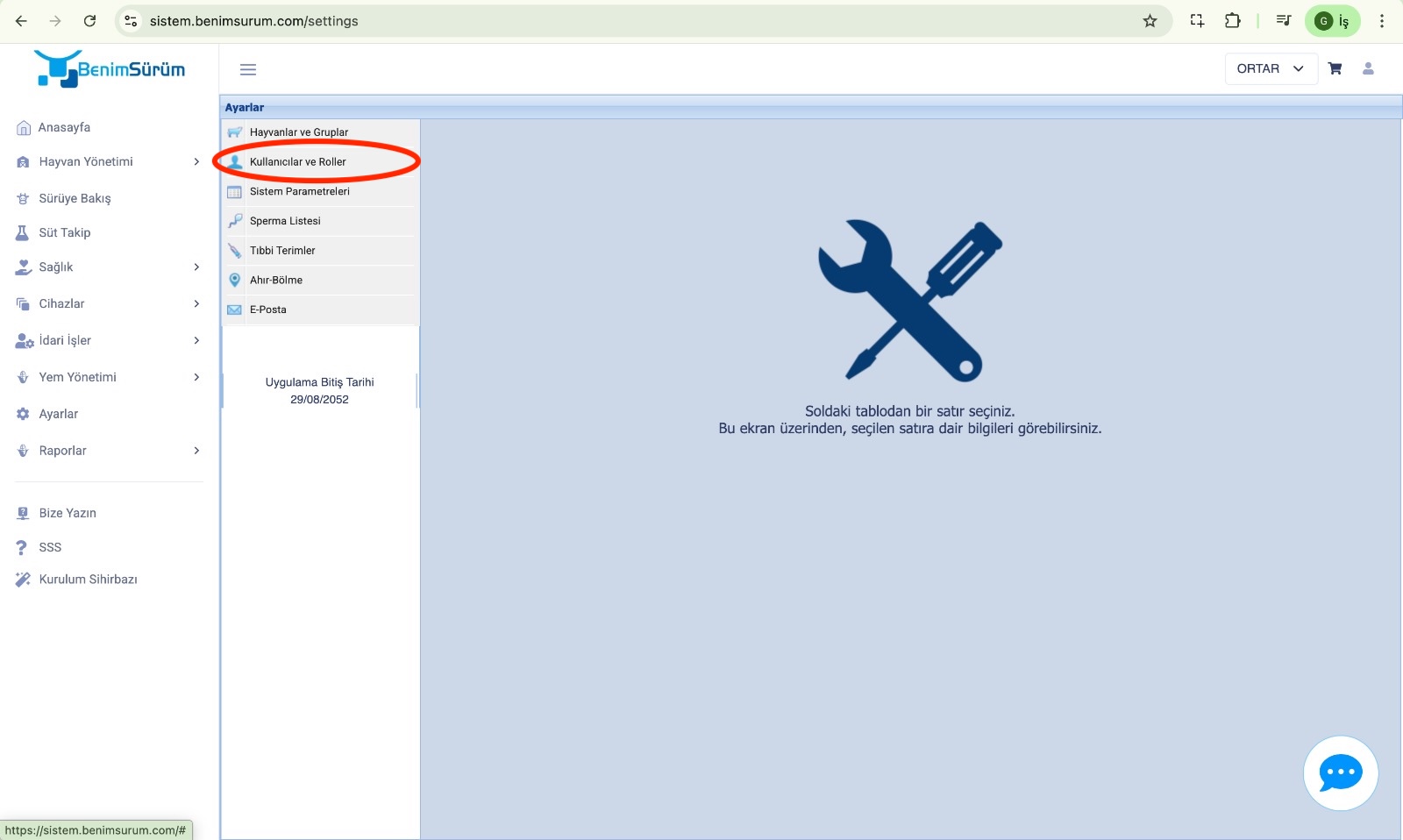 Bu işlem yalnızca Benim Sürüm web uygulaması üzerinden gerçekleştirilebilmektedir. Benim Sürüm web uygulamasına giriş yapınız. Sol menüde yer alan Ayarlar sekmesine tıklayınız. Açılan ekranda Kullanı…