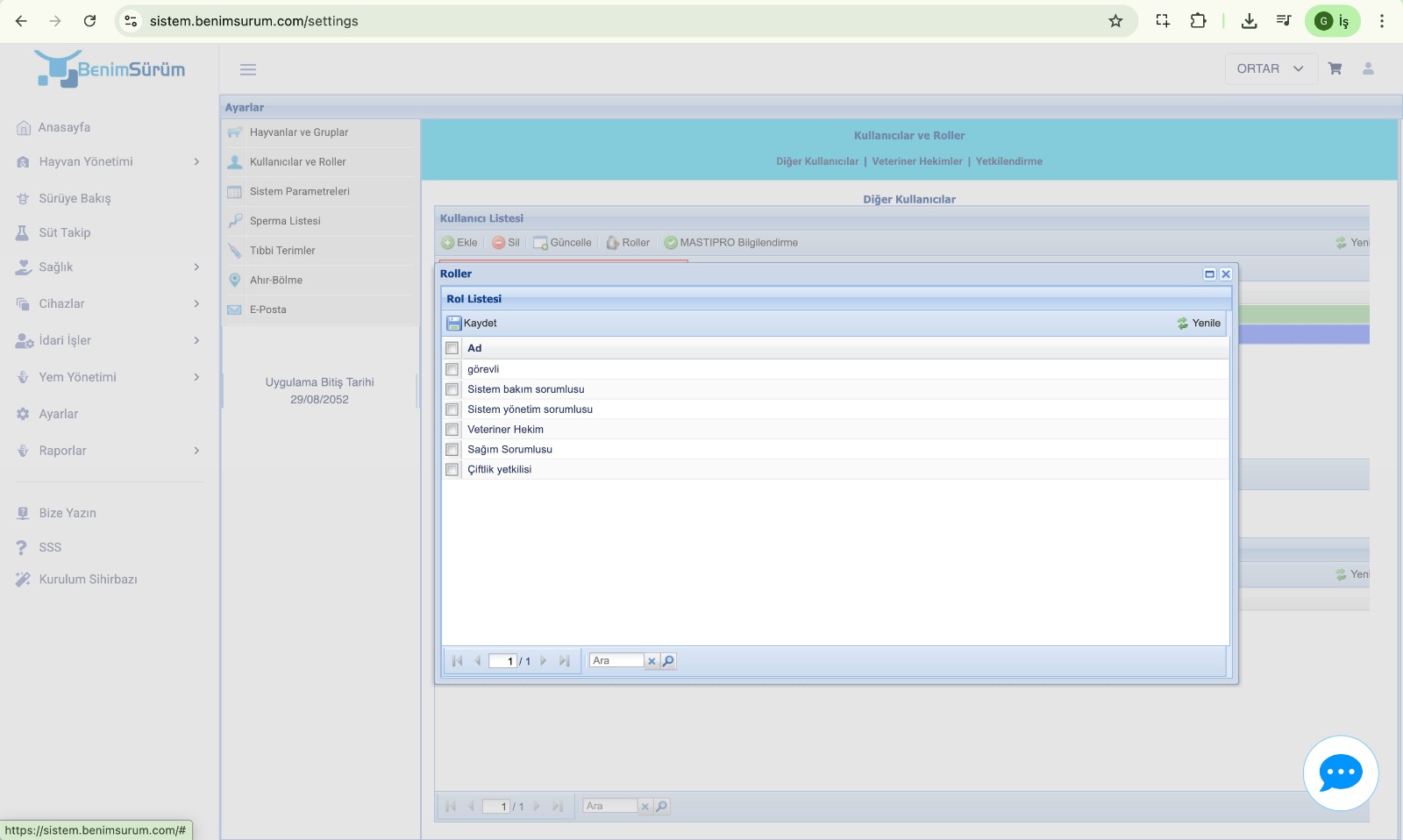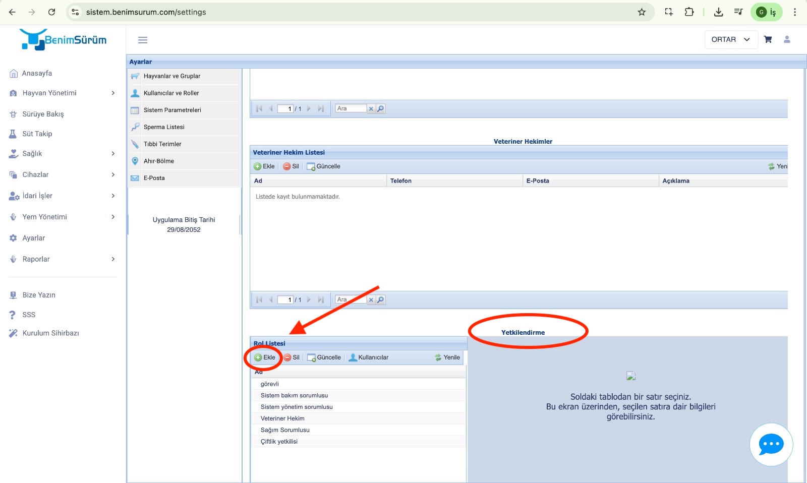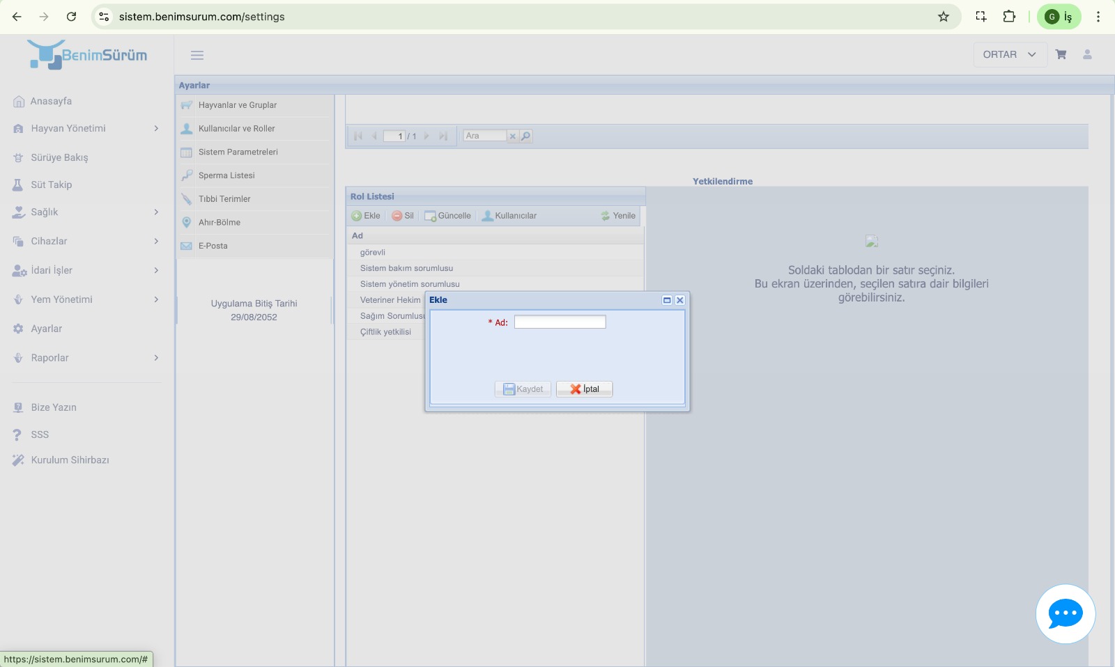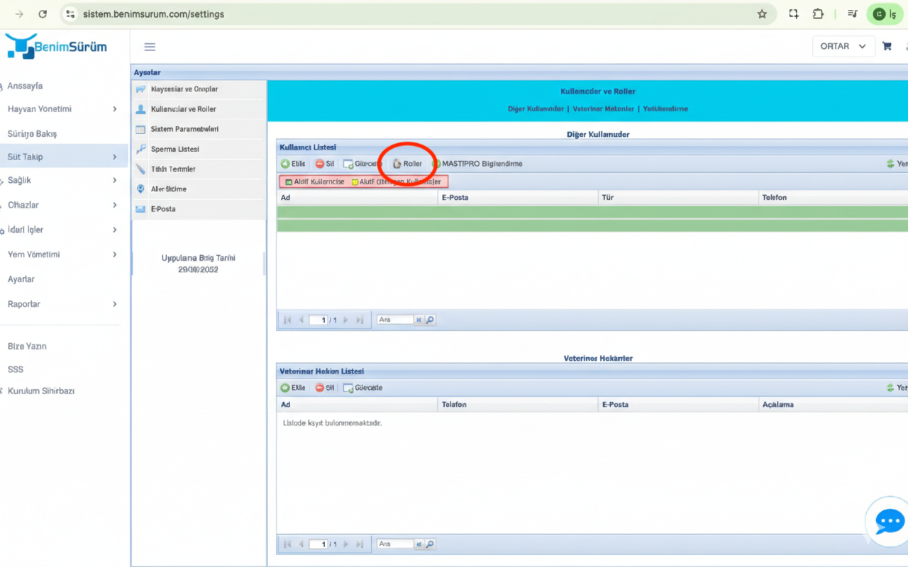 - Açılan ekranda Kullanıcı ve Roller sekmesini seçiniz.