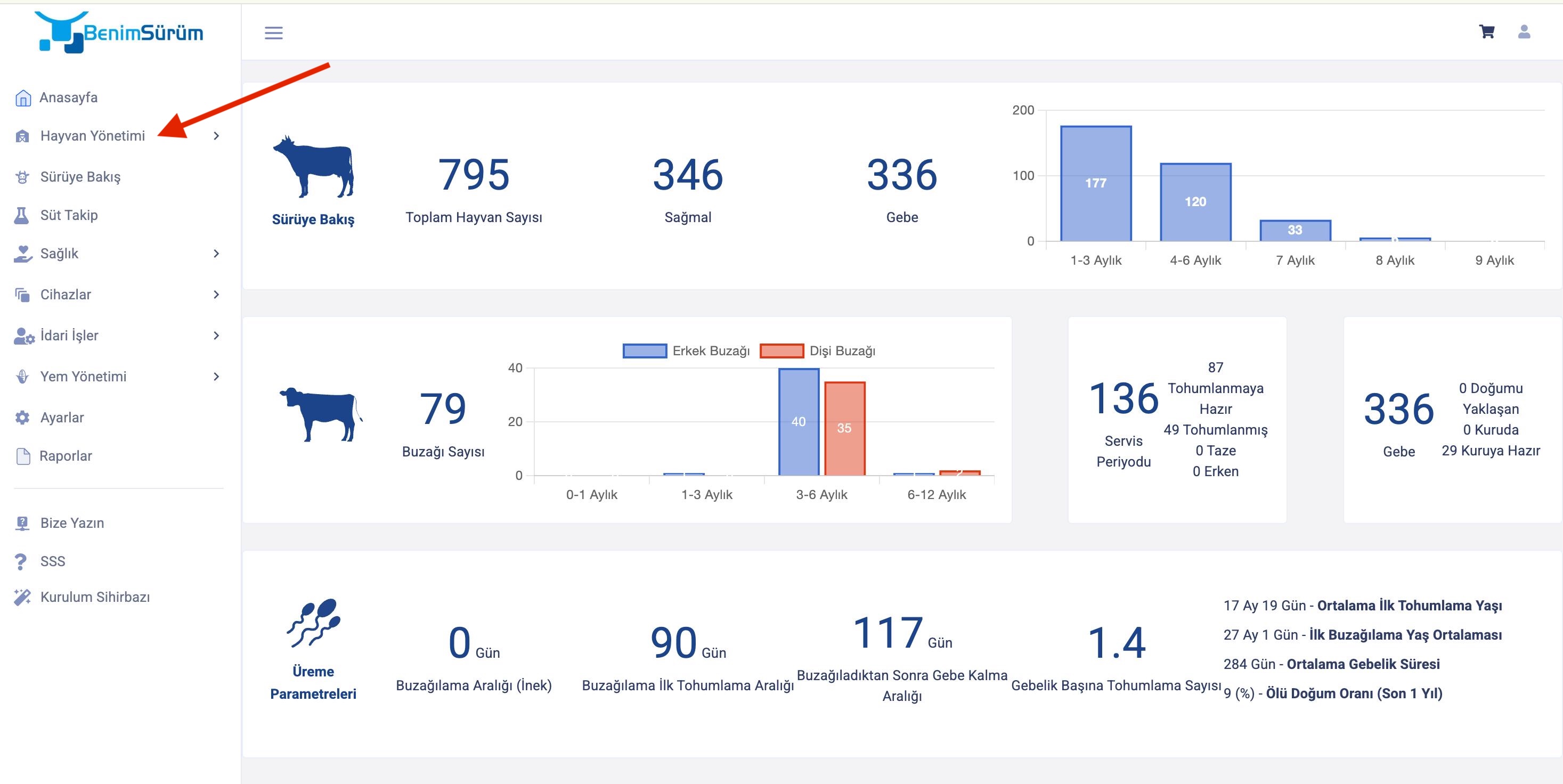 - Sol menüden “Hayvan Yönetimi” sekmesine tıklayın.