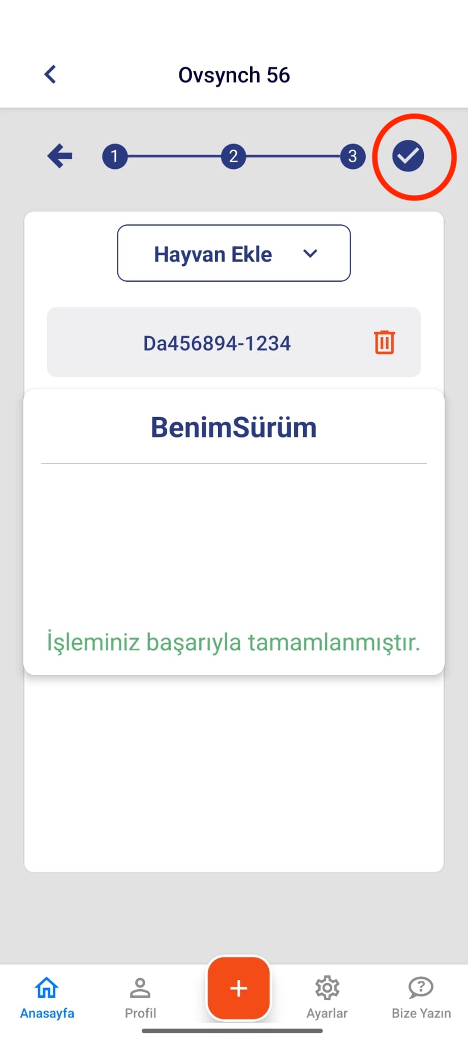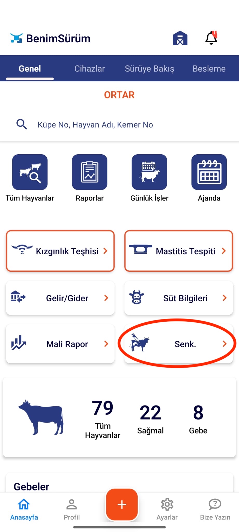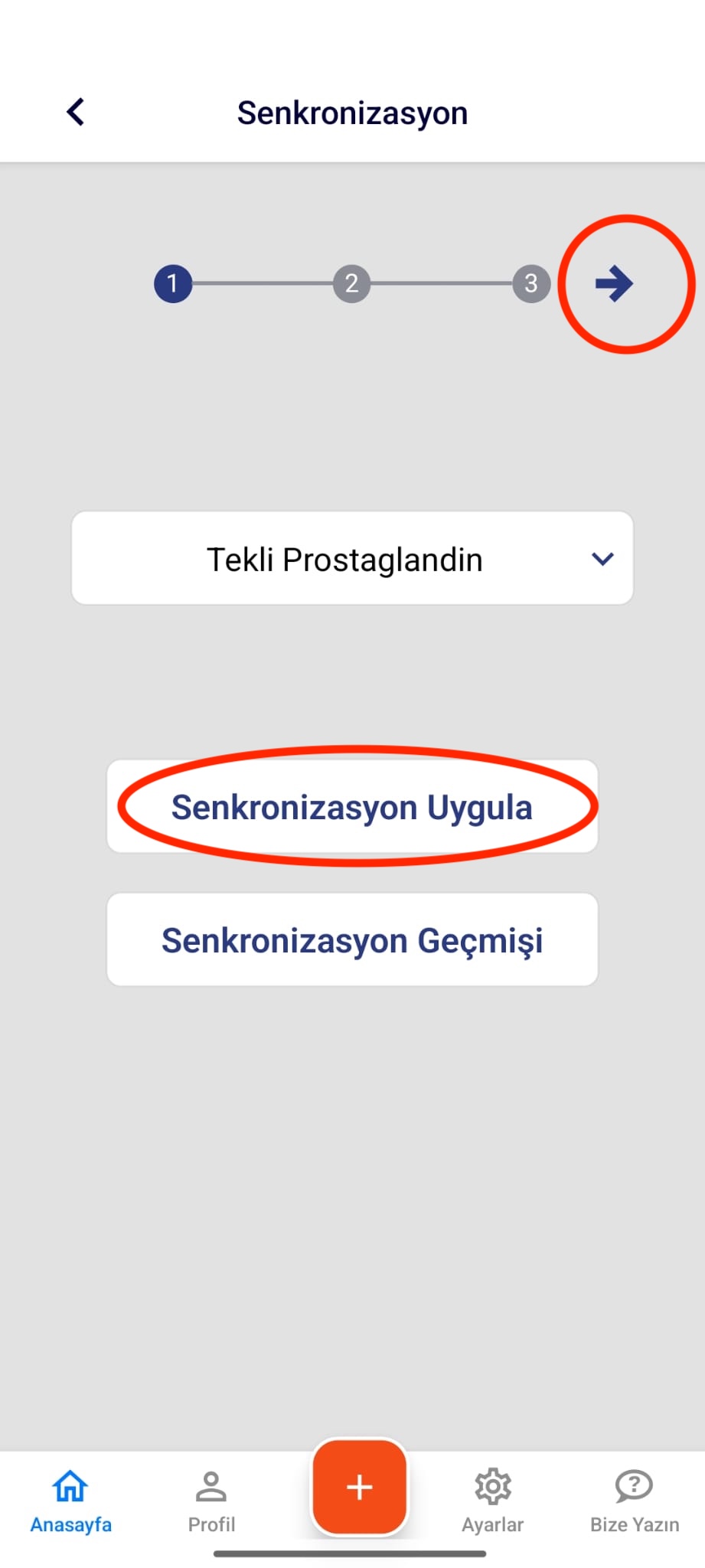 Benim Sürüm mobil uygulamanıza giriş yapınız.. Ana sayfada yer alan Senkronizasyon sekmesini seçiniz. Açılan ekranda, hayvanlarınıza uygulayacağınız protokolü seçiniz ve “Senkronizasyonu Uygula” buto…