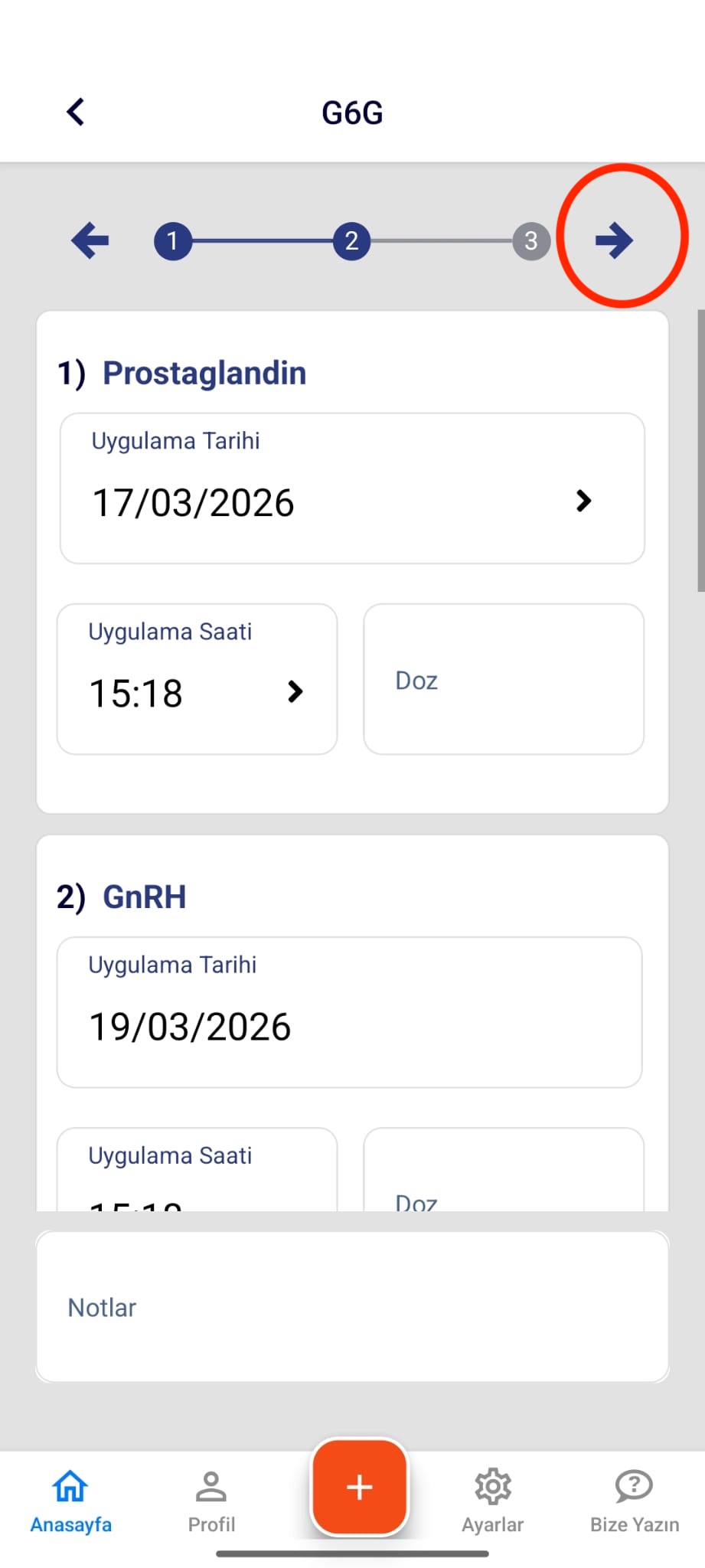 - İlk enjeksiyon tarihini seçiniz.