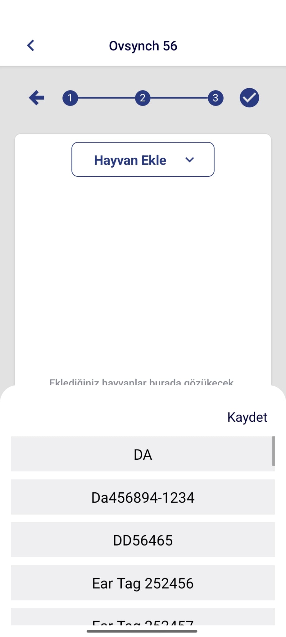 - Açılan ekranda “Hayvan Ekle” seçeneğini kullanarak senkronizasyon uygulanacak hayvanları seçiniz.